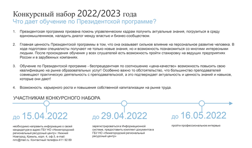 Президентская программа подготовки управленческих кадров для организаций народного хозяйства Российской Федерации в 2022/23 учебном году