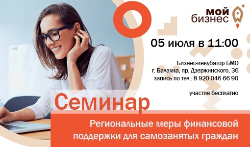 Место проведения: МБУ «Бизнес-инкубатор БМО», г. Балахна, пр. Дзержинского, д.36 (здание МФЦ, 2 этаж).