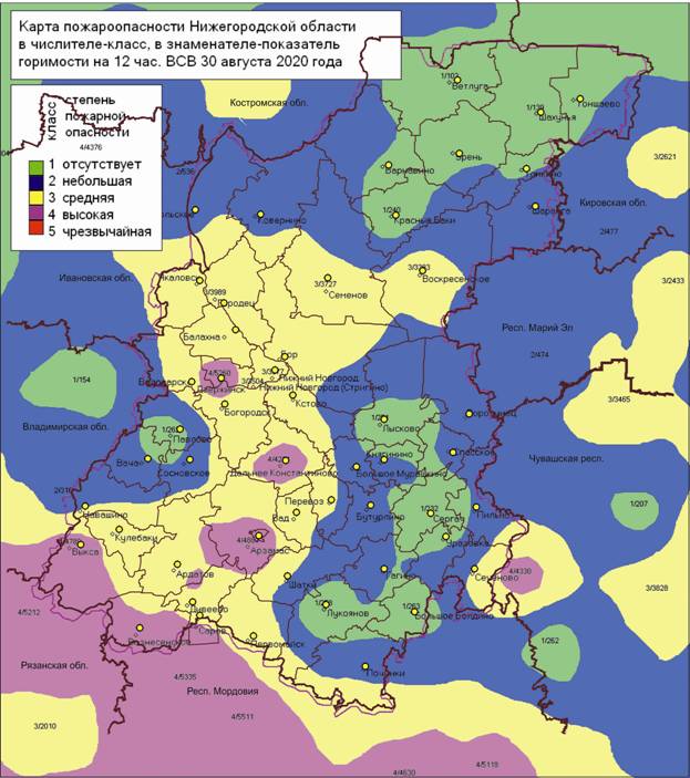 лесопожарной обстановки на территории Нижегородской области по состоянию на 22.00 30.08.2020