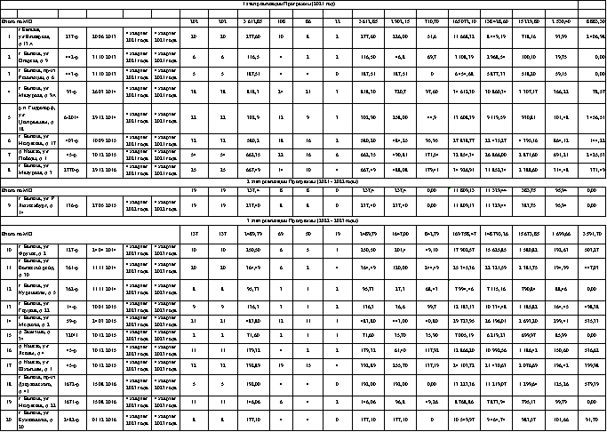 - Переселение граждан из многоквартирных домов, признанных в установленном порядке аварийными и подлежащими сносу или реконструкции в связи с физическим износом в процессе их эксплуатации (далее – аварийные многоквартирные дома) до 01.01.2017 в благоустроенные жилые помещения